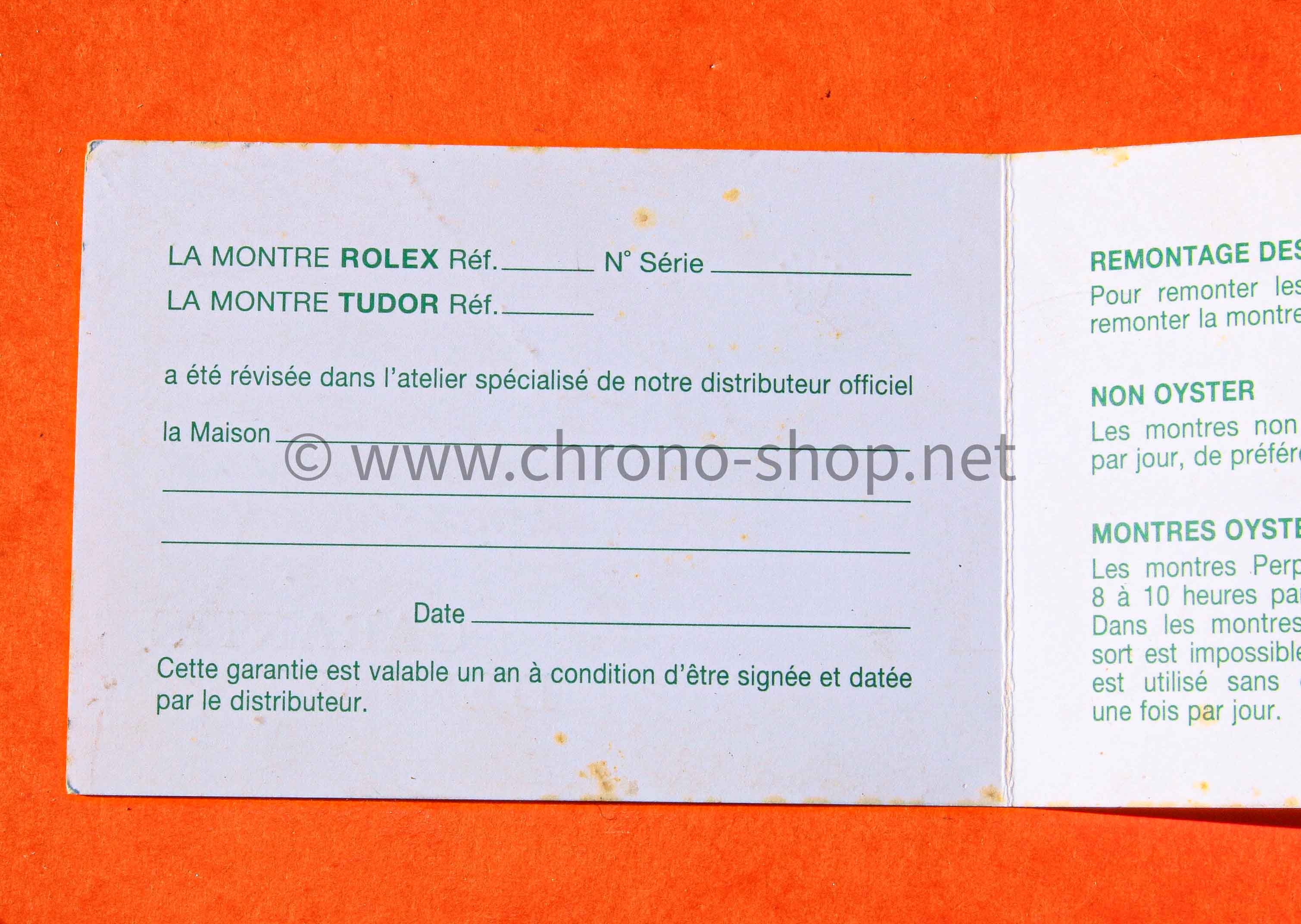 GENUINE ROLEX INTERNATIONAL FRANCE CARD SERVICE GUARANTEE GMT MASTER,...