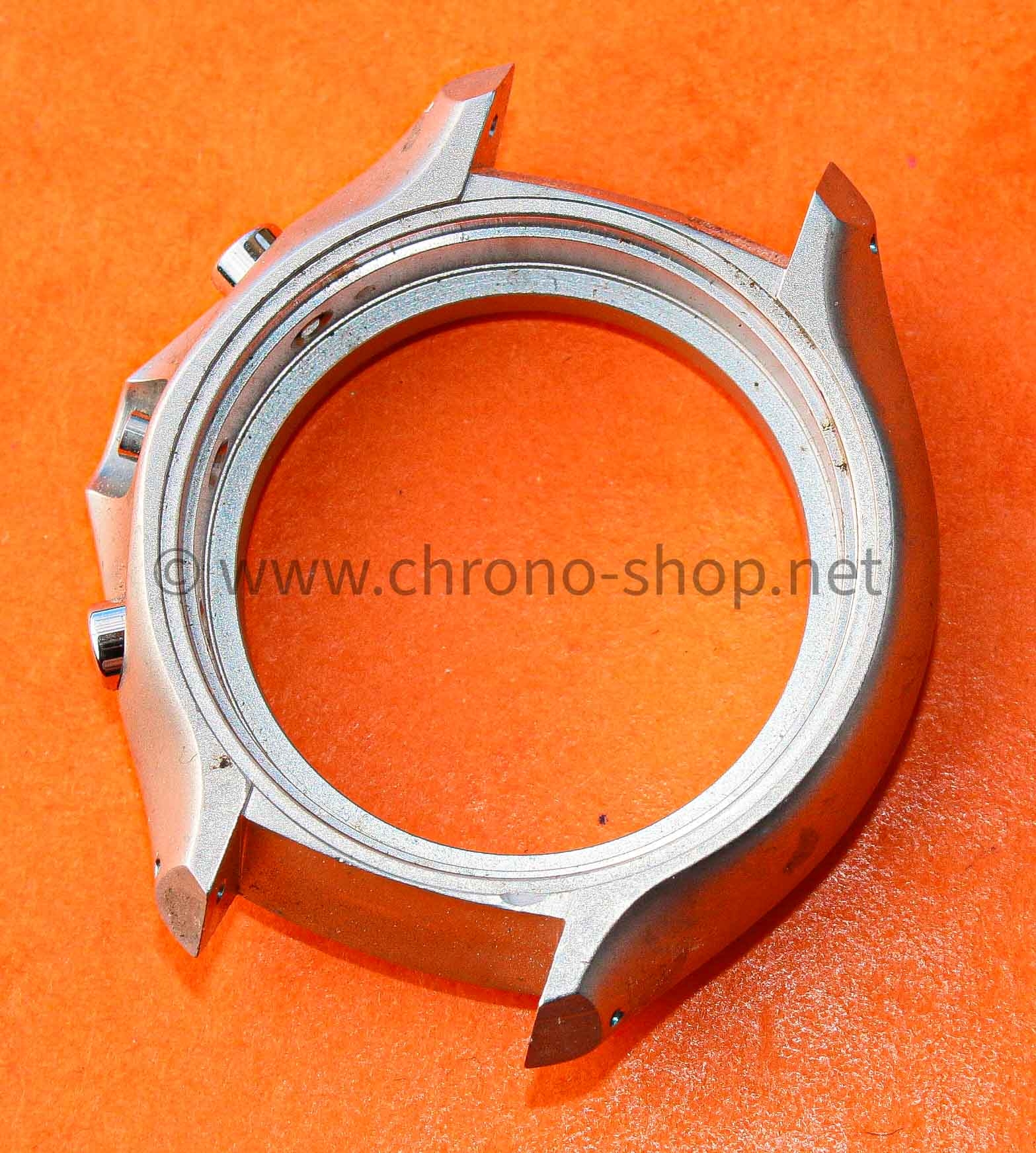 Genuine Tissot watch part : preowned midcase with tachymeter fix bezel (polished finish) Chronograph 43mm mens size ssteel with 2 pump pushers and tube crown.