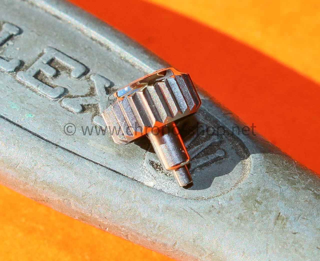Pre-owned ROLEX 18K Gold Tube Crown part ref #24-703-8. Fits on Submariner date watches...