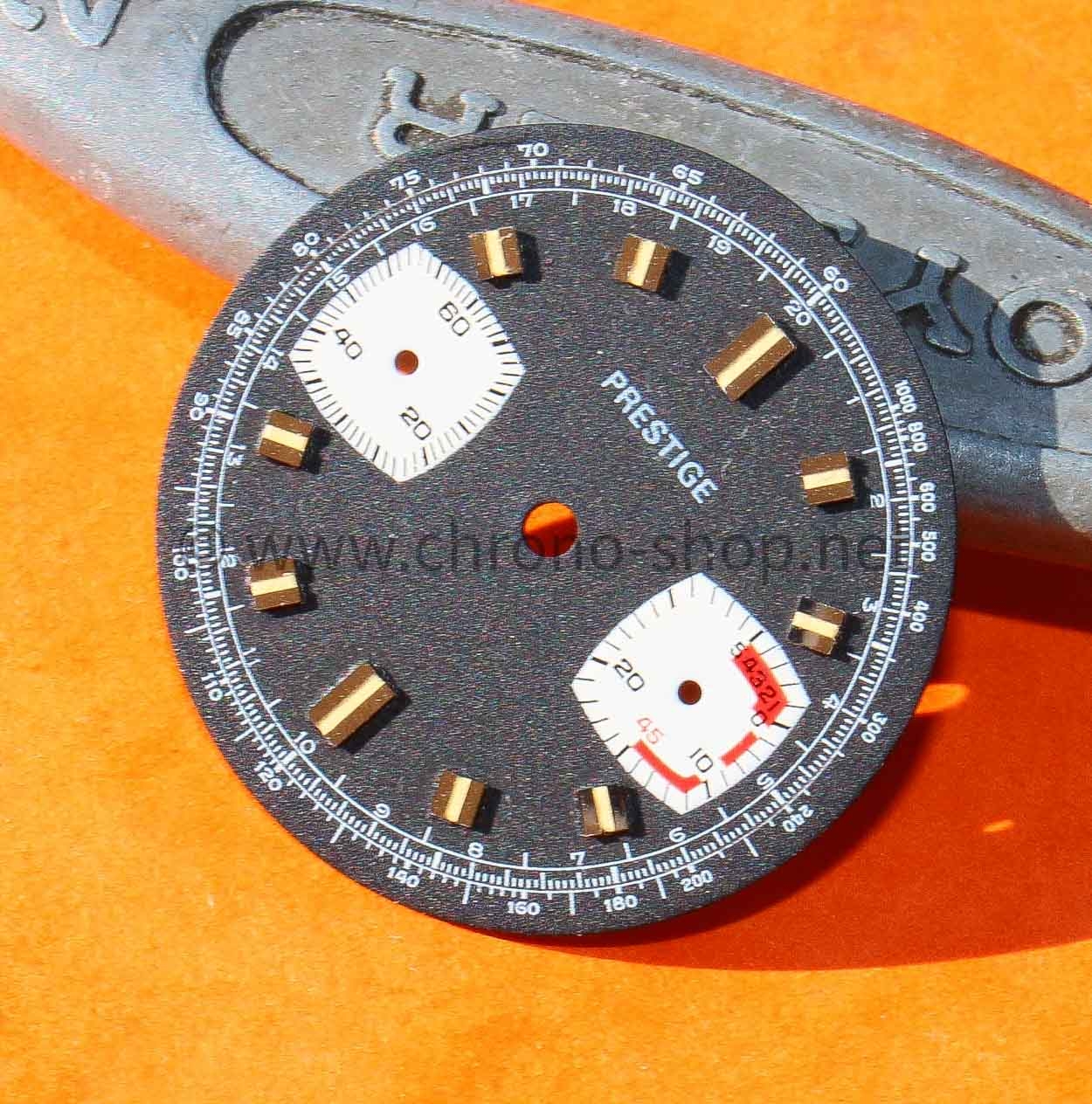 Genuine preowned and rare to get Chronograph Prestige brand dial for Valjoux 7733 swiss caliber for sale.