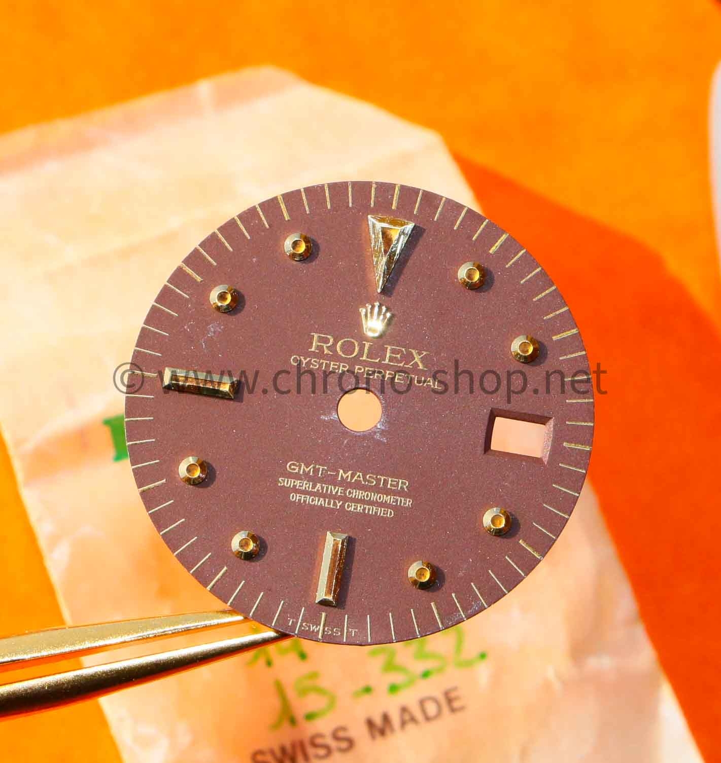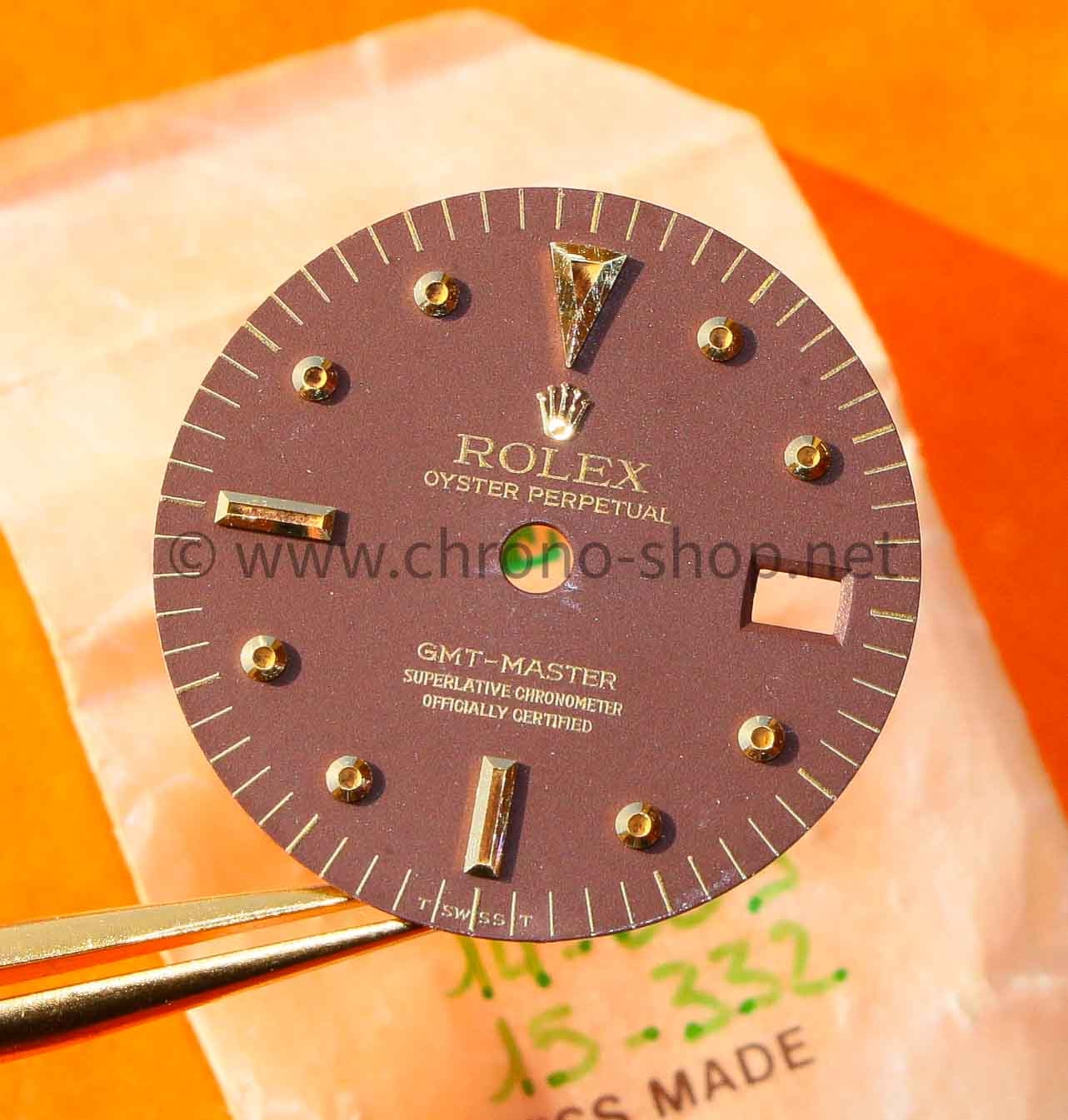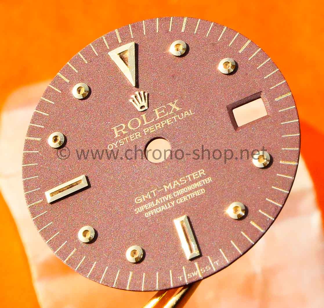 Description: Genuine AMAZING ROLEX COLLECTIBLE watch mat Brown Maroon Dial GMT Master Gilt #1675-3-1675-8 18k gold