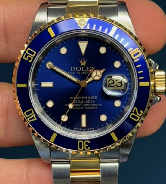 Original pre-owned 90's Rolex Tutone & Blue submariner date bezel inlay watch for ref...
