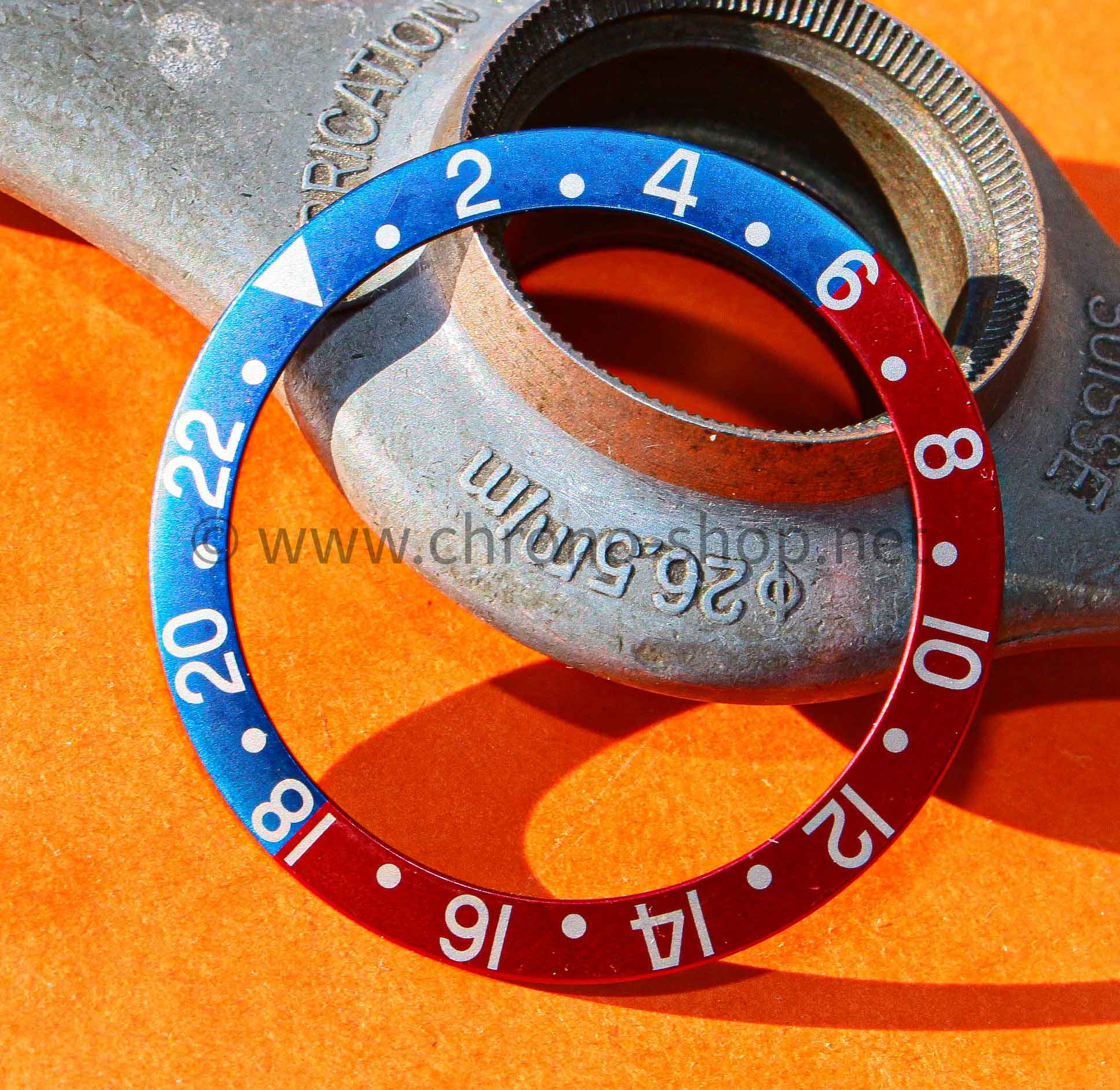 This is an original Rolex 70's GMT-Master 24H bezel graduated preowned faded insert part, famous for its color and its charm on your wrist !