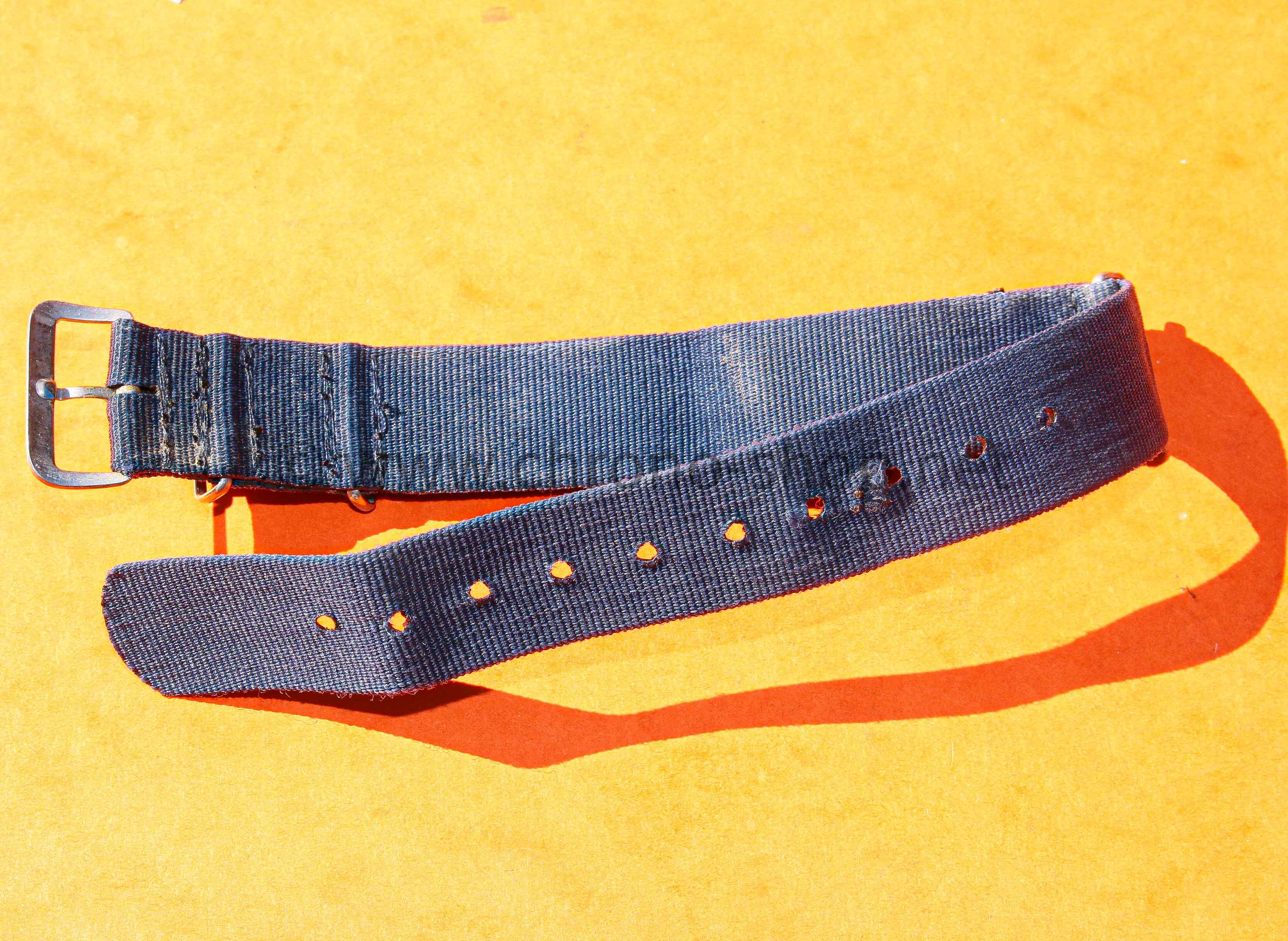 that nato strap is estimated from the 70s, more square, more thin with old style tang buckle.