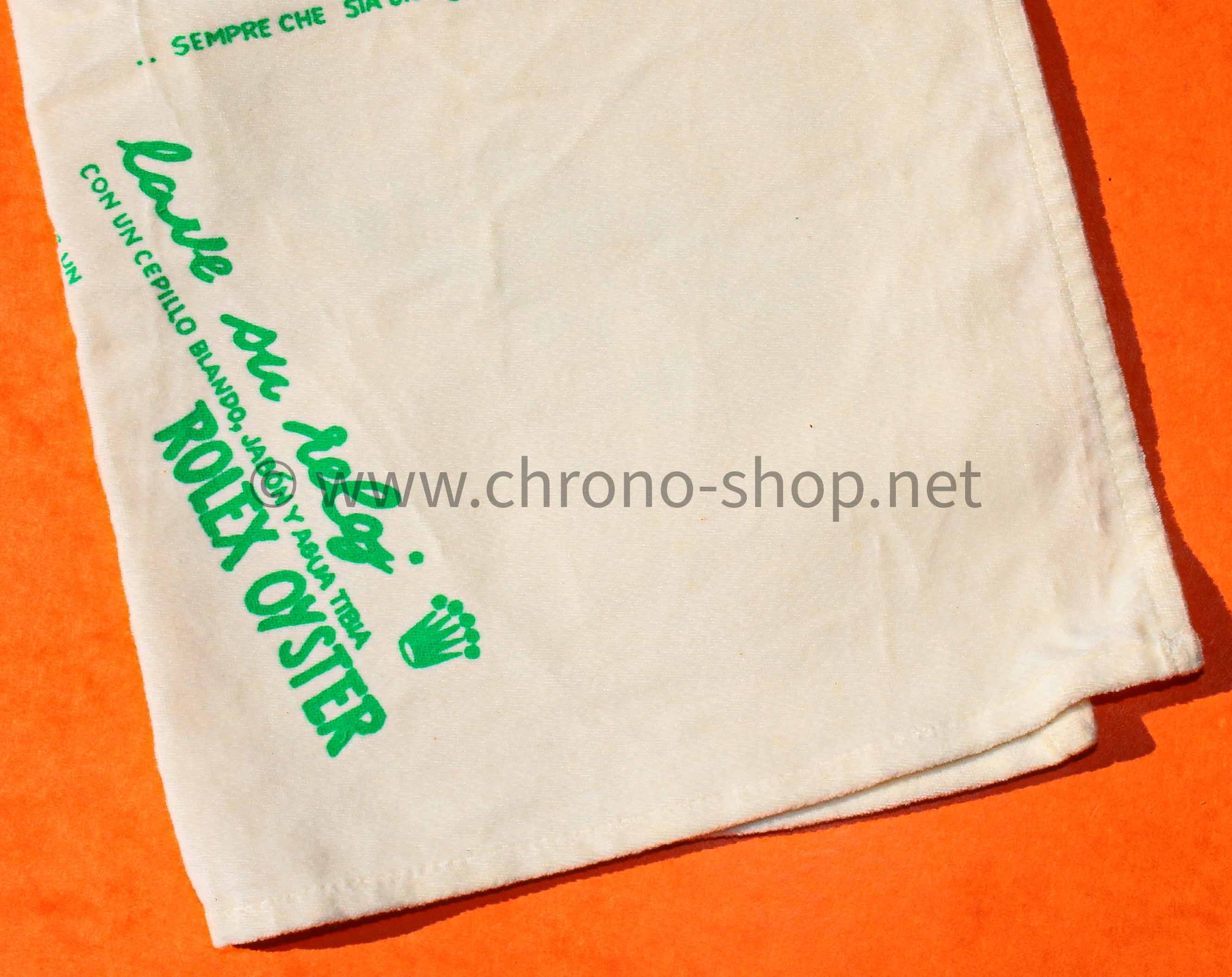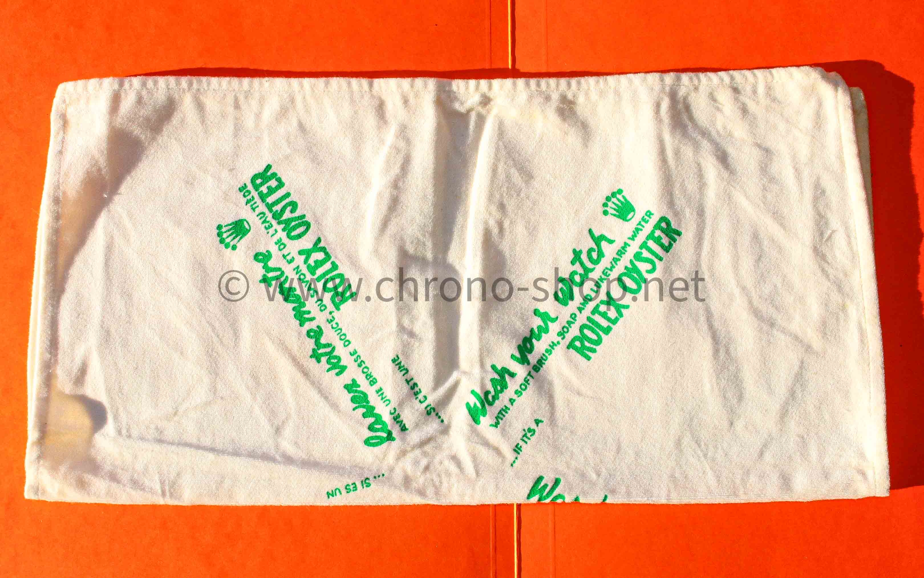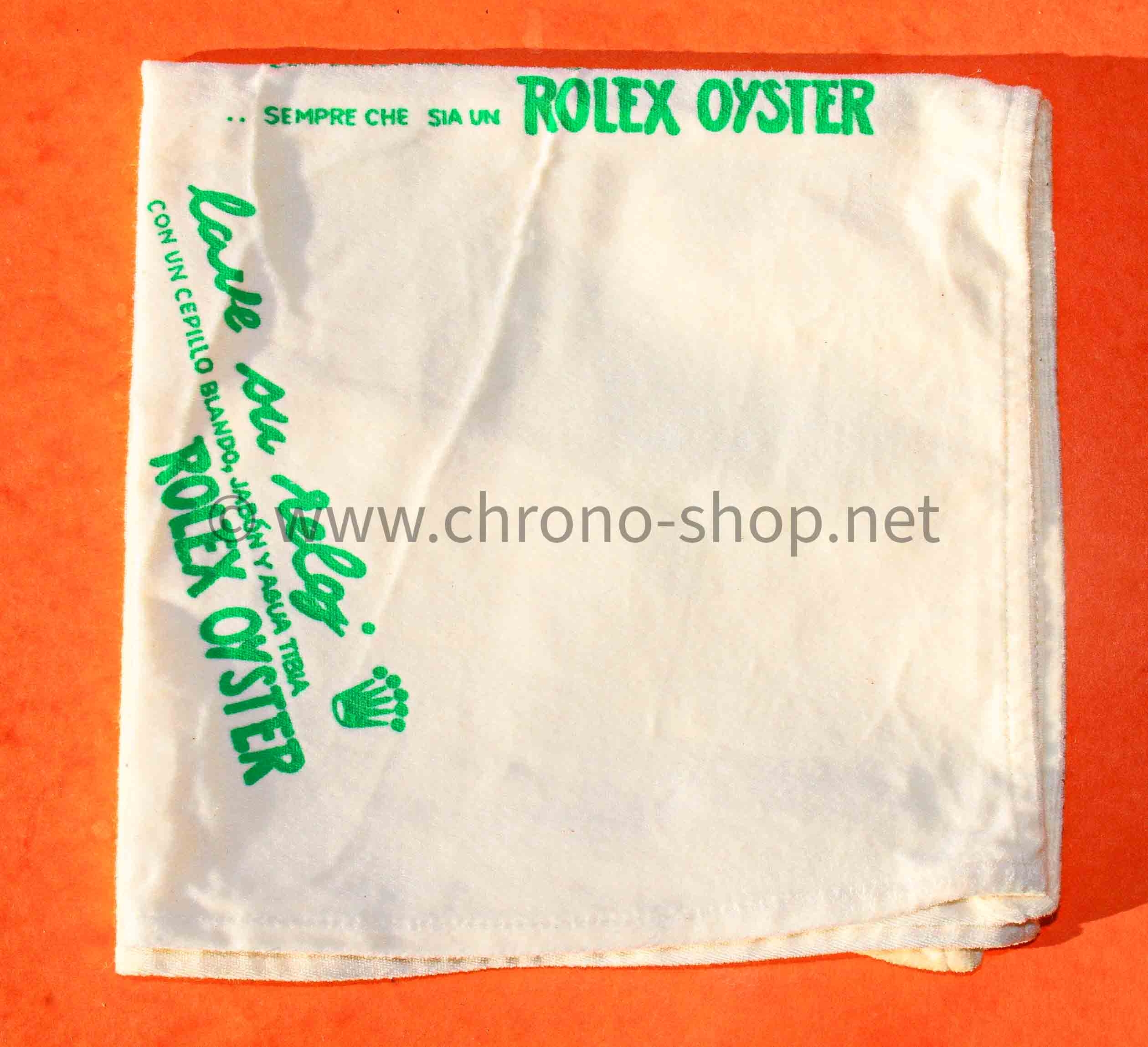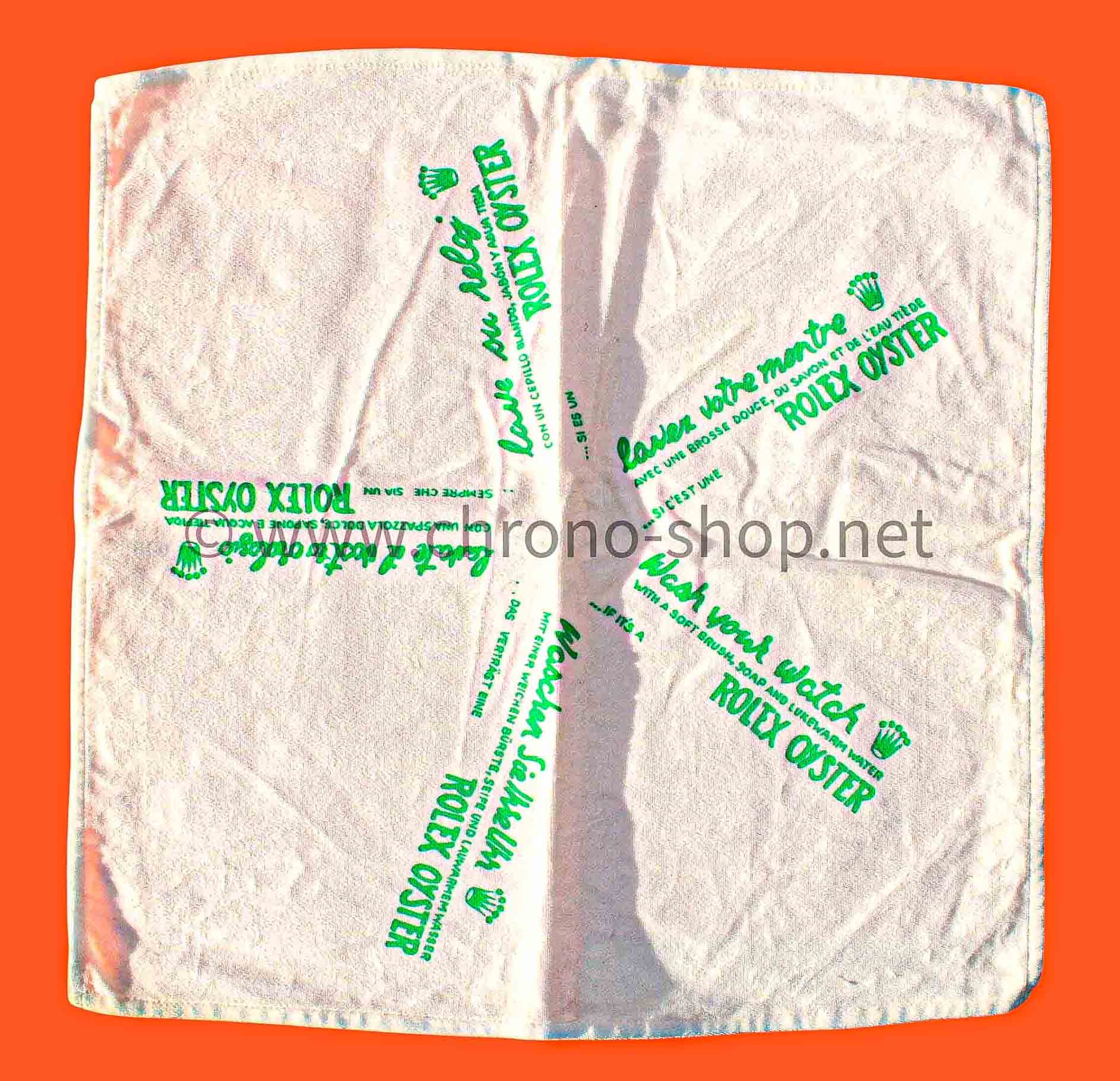 Etoffe ancienne des années 70 début 80 signé Rolex en multi languages couleur vert clair qui permet de micro-polir vos montres sans les abîmer tout en respectant leur polissage.