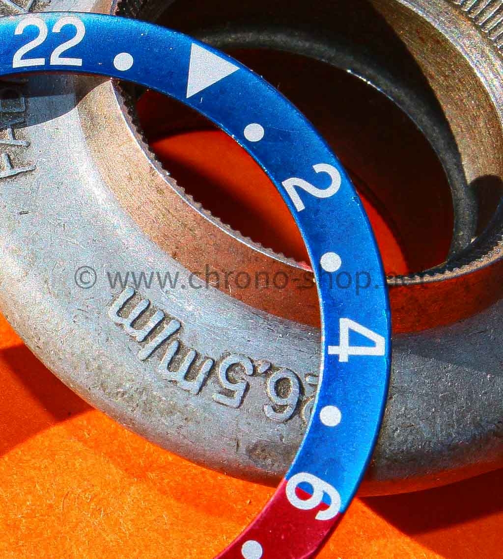 Les couleurs ne sont pas "peintes" mais appliquées galvaniquement dans un processus similaire aux cadrans dorés . Généralement, les inserts Rolex ont un diamètre intérieur d'environ 30,2 mm, un diamètre extérieur d'environ 37,75 mm et une épaisseur d'environ 0,7 mm.