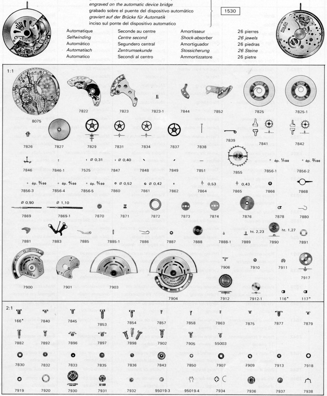 Rolex fourniture horlogère originale de montres référence 7882 (1530-7882) : -Vis de...