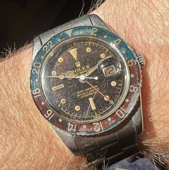 AUTHENTIQUE ROLEX "REDBACK" (fond rouge) ANCIEN DISQUE GRADUE ROTATIF 24H FADED PEP SI...