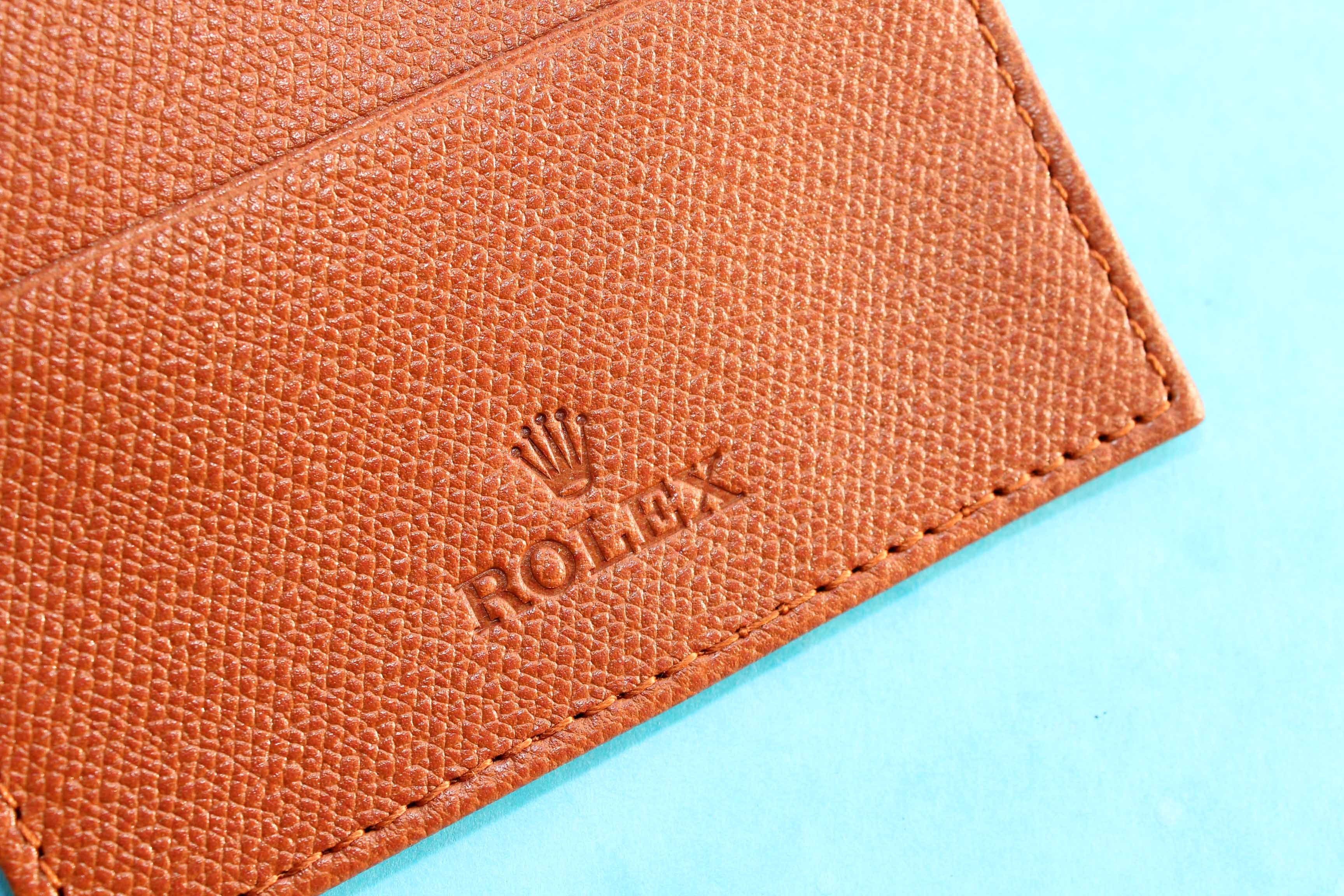 This item is a beautifull brown tobacco color ROLEX Card Certificate Holder LEATHER Wallet from AIR KING, EXPLORE,R DAYTONA, DAYDATE WATCHES....