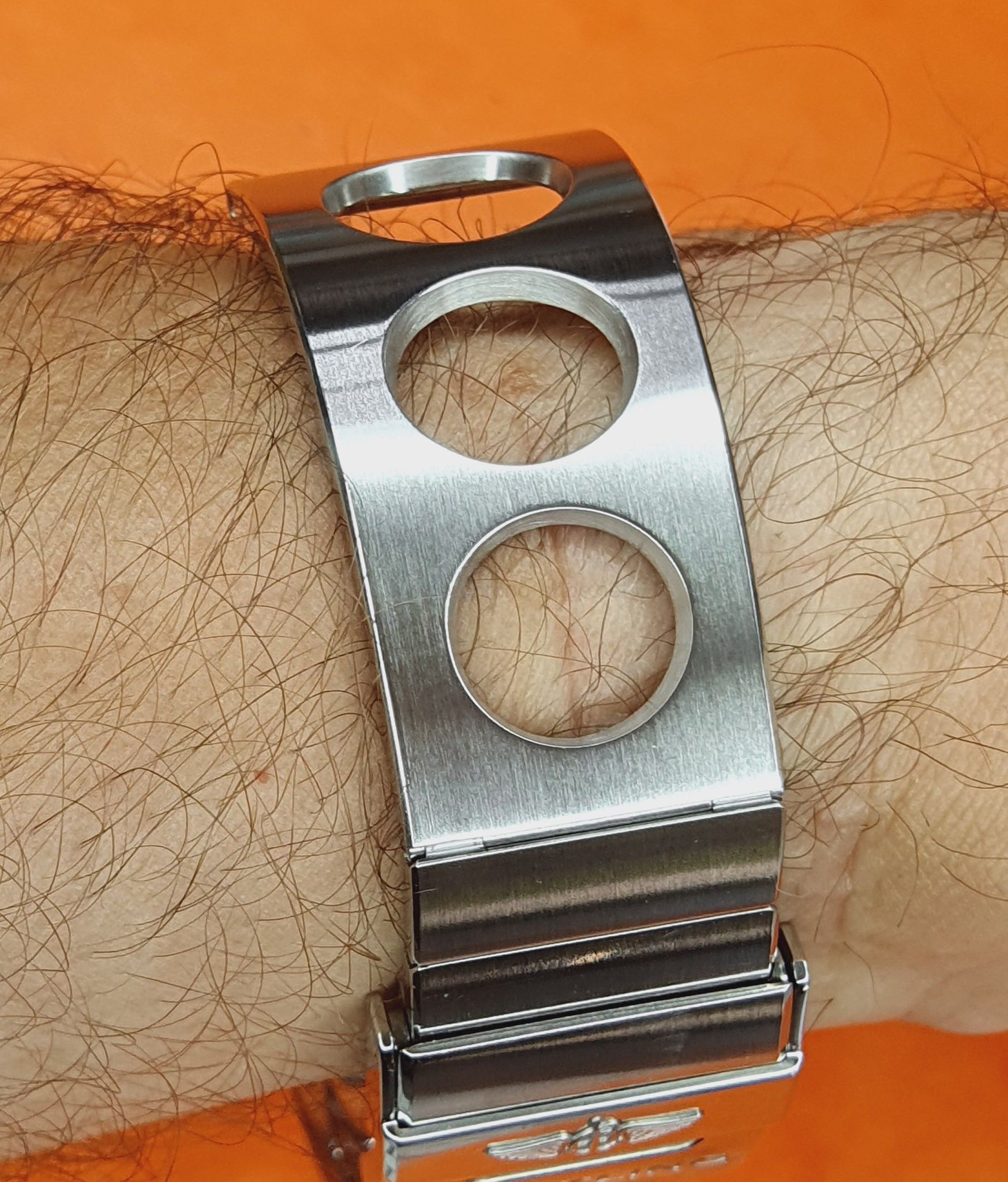 Cette version finition satinée de bracelet (la plus courante étant la version polie) Breitling est assez rare et peu courant sur le marché.