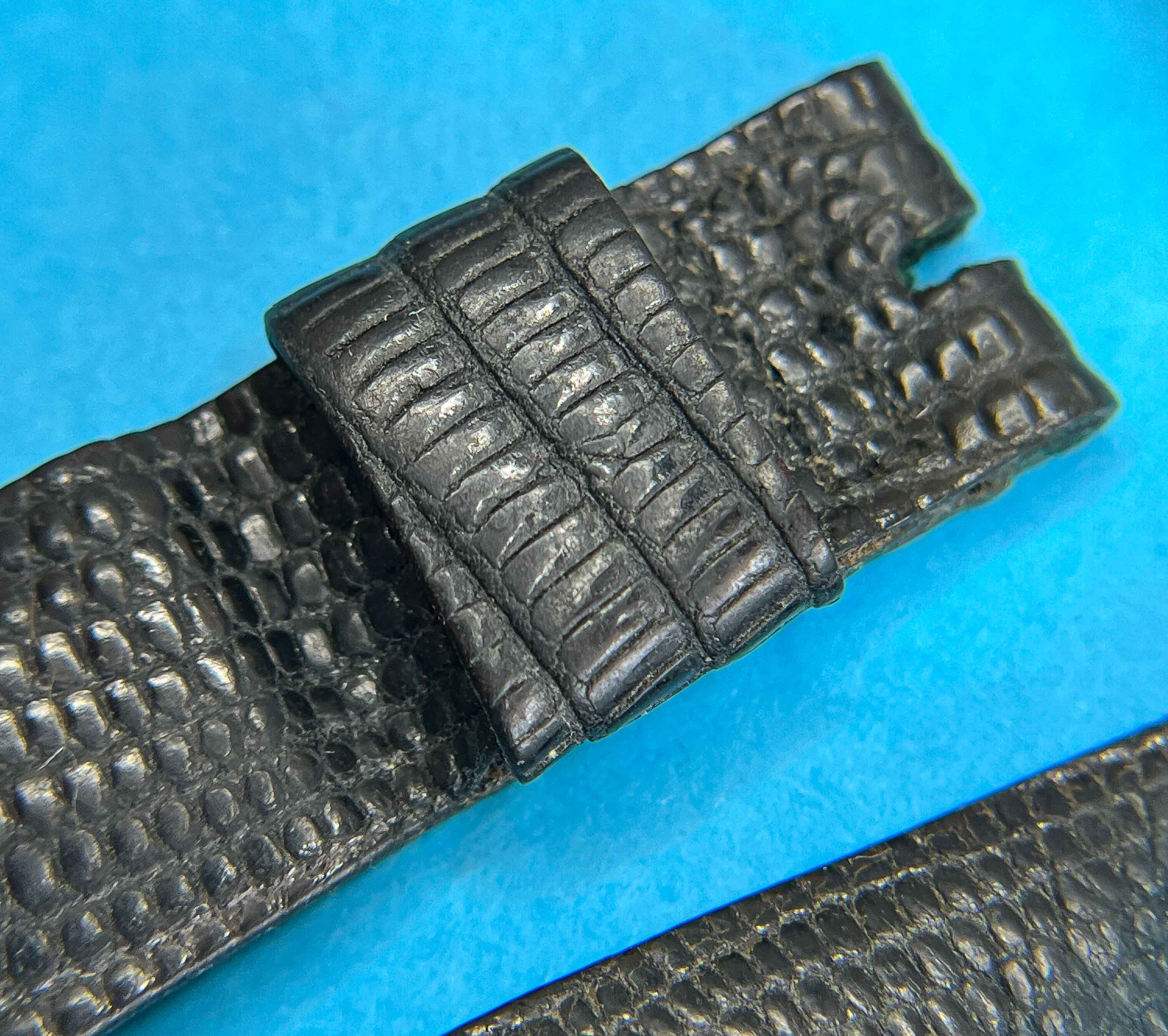 Authentique Rolex bracelet 19mm en peau de lézard des années 60. Couleur noir brillante...