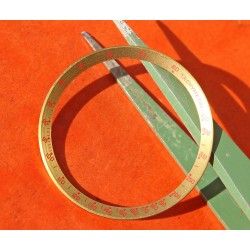 Disque interne, gradué, de couleur doré, chiffres couleur orange, lunette incurvée.